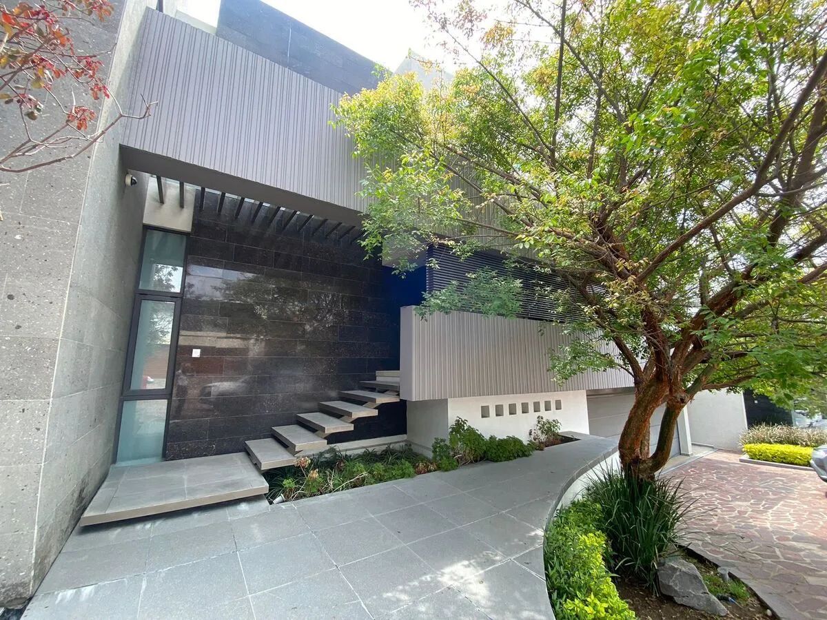 Estudio, Bar con Terraza, Sala, Comedor, Cocina, Cuarto de lavado, Cuarto de servicio con baño completo, Gimnasio, Cuarto de máquinas, Cuarto de juegos con mezzanine, Jardín con terraza, Patio de servicio, Cochera para 6 coches, Bodega, Medio de baño en área de recepción, Medio baño en área de jardín